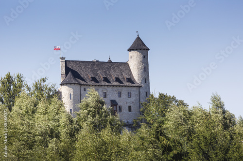 Beautiful medieval castle at sunny day over blue sky, Bobolice,