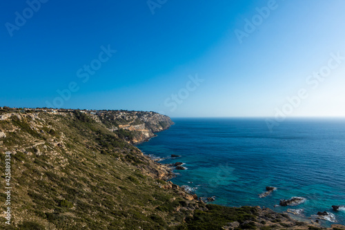 Beautiful Mediterranean landscape in Mirador de Sa Torre, Mallorca. Coastal cliff area with several coves. Excursion for sportsmen and nature lovers.