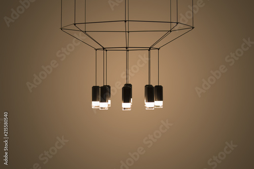 Beautiful metall geometric modern ceiling lamp interior contemporary decoration isolated on a brown background