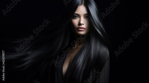 Beautiful model woman with long hairstyle. Care and beauty hair products.
