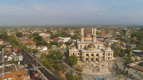 beautiful mosque with minarets on island Java Indonesia. aerial view mosque in an asian city