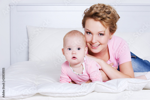 mother, baby, happy, newborn, children, little, care, children, smile, home, infant, beautiful, together, love, young, innocence, bonding, smiling, portrait, happiness, small, horizontal, lying, childhood, motherhood, caucasian, eltern, adult, people, bed, family, adorable, daughter, room, playing, holding, togetherness, attractive, 2, bedchamber, toddler, 20s