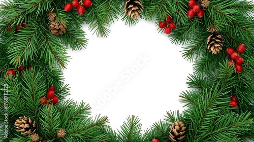 Beautiful Natural Christmas Wreath with Pine Cones and Red Berries for Festive Decorations