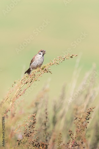 Beautiful nature scene with bird Eurasian Tree Sparrow (Passer montanus).