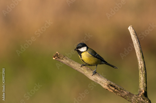 Beautiful nature scene with Great tit (Parus major). Wildlife shot of Great tit (Parus major) on branch. Great tit (Parus major) in the nature habitat.
