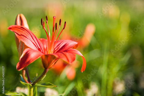 Beautiful orange lily on green nature backround