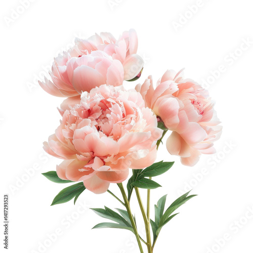 Beautiful peony flowers in soft pink hues with lush green leaves, creating serene and elegant floral arrangement. Perfect for decoration or gifting