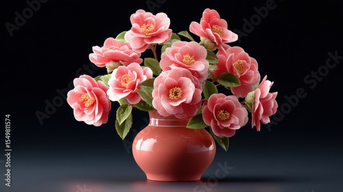 camelia, flower, bouquet, pink, vase, plant, floral, beauty, nature, spring, decoration, still life, arrangement, art, colours, red, home decor, aesthetic, pottery, japanese, chinese, floral pattern, creative, minimalist, modern, elegant, artist, digital artwork