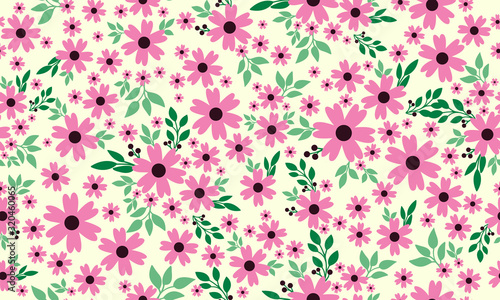 Beautiful pink flower pattern background for valentine, with leaf and floral decor.