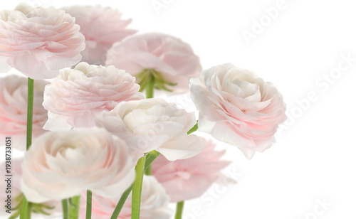 Beautiful pink ranunculus flowers on white background