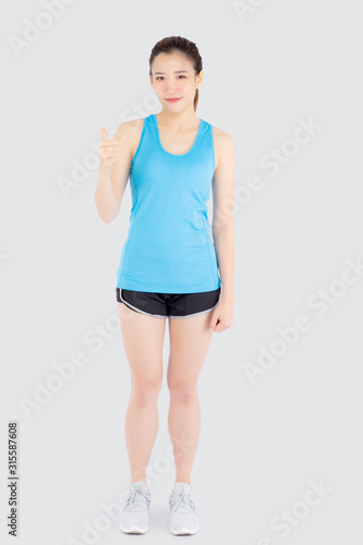 physical exercise, exercise, sport, training, health, wellness, fit, gym, fitness, thumb up, success, portrait, body, confident, woman, cheerful, happiness, satisfied, gesture, happy, asian, asia, isolated, beautiful, healthy, shape, lifestyle, smile, beauty, well-being, activewear, posing, standing, clothing, active, model, white, background, young, female, girl, wear, person, studio, people, adult, 1, attractive, looking, lady