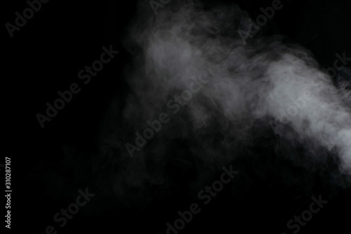 Beautiful puffs of white smoke randomly mixing slowly fill the blackness of the frame