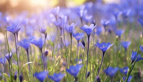Beautiful purple flower blossoms in a vibrant meadow of green generated by AI