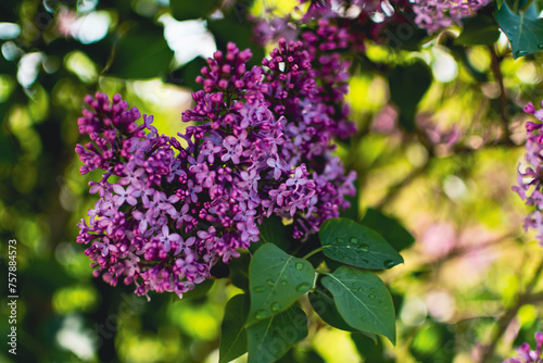 Beautiful purple lilac at sprintime on a blurry background, syringa vulgaris