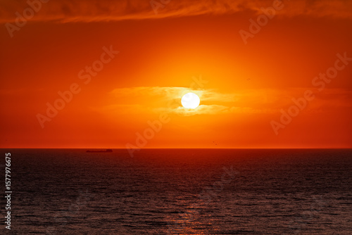 Beautiful red and orange sunrise over the sea.