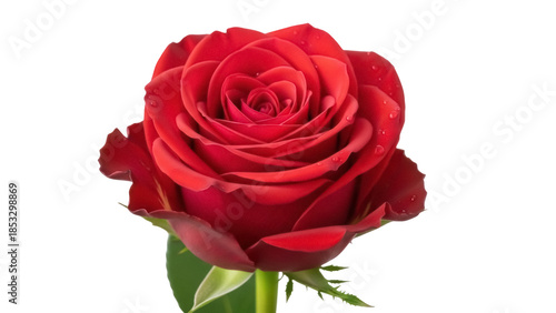 Beautiful red rose isolated PNG on transparent background, romantic flower with water droplets for love and Valentine s Day concepts
