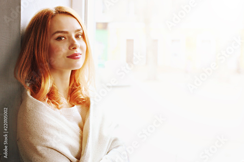 hot drink, cafes, autumn, female, young, girl, lifestyle, person, sweater, winter, happy, beautiful, woman, caucasian, morning, people, looking, window, adult, breakfast, hot, white, smile, attractive, portrait, pretty, relaxing, lunch, sitting, beverage, beauty, cold, cosy, shop, student, fall, redhead, red, hair, eatery, hipster, october, november, knitwear, knit up, wear, christmas, pattern, melancholy, mood