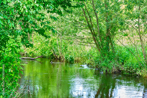 beautiful river in the countryside general plan color