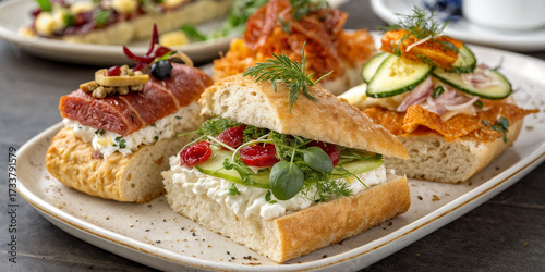 food, sandwich, bread, meal, snack, cheese, breakfast, lunch, healthy, lettuce, vegetable, plate, toast, fish, fresh, dinner, delicious, tomatoes, tuna, green, meat, salad, white, epicure