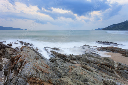 beach, siam, phuket, sunset, beautiful, nature, background, water, landscape, seascape, blue, summer, sky, white, travel, sea, view, ocean, wave, cloud, rock, horizon, peaceful, light, dusk, sand, long, motion, relax, stone, tropical, season, exposure, red, yellow, colourful, vacation, dramatic