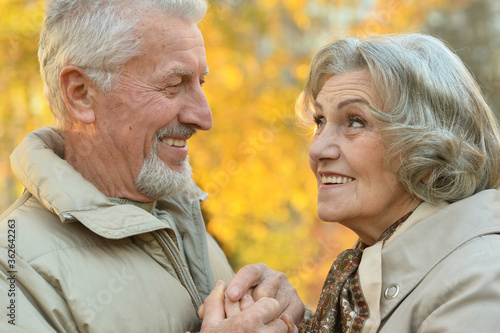 Beautiful senior couple holding hands in the park
