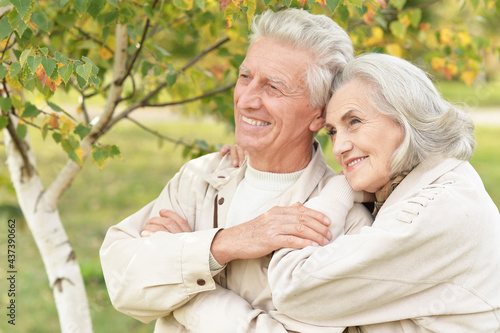 beautiful senior couple hugging in the park