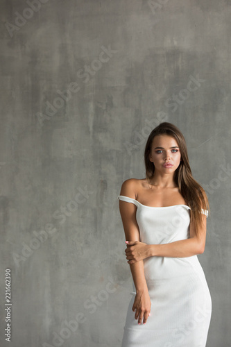 attractive, beautiful, beauty, body, dress, fashion, female, girl, glamour, model, portrait, pretty, sexy, white, woman, adult, background, brunette, casual attire, caucasian, cute, hair, isolated, lady, 1, people, person, skin, young, close, back, clothing, grey, oriental, skinny, honed, slim, smile, grey, fit, face, style, elegant, hot, comfort, make-up, posing, cosmetic, gorgeous, coiffure