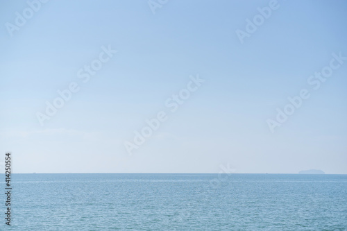 Beautiful sky over sea with sunlight. Tranquil sea harmony of water surface. Sunny sky and blue ocean.