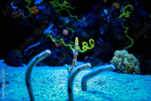 Beautiful spotted garden eels in the aquarium