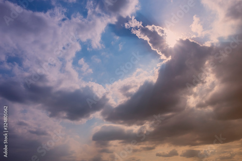 Beautiful stormy sky with sun rays.