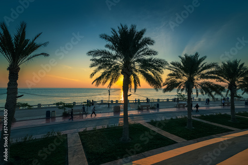 Beautiful sunrise view in Al-Khobar Corniche -Saudi Arabia.