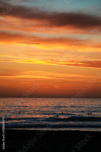 Beautiful sunset at the beach in portugal at the atlantic ocean close to lissabon. Wallpaper surf