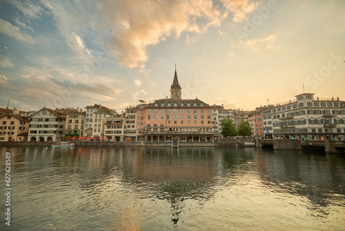 Beautiful sunset in the old town of Zurich, Switzerland.