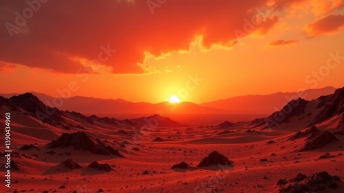 beautiful sunset on mars with setting sun.