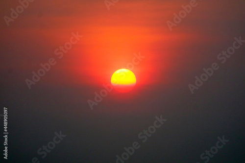 beautiful sunset orange yellow red silhouette sky back on soft cloud