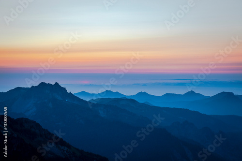 Beautiful Sunset over North Cascades in Mt. Rainier National Park