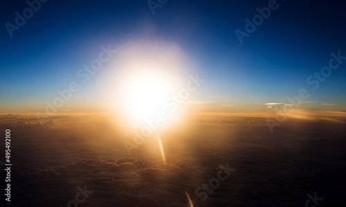 sky, heaven, cloud, light, blue, nature, sunrise, bright, sunlight, background, beautiful, cloudscape, high, sun, view, sunny, copy, space, sunset, landscape, horizon, cloudy, summer, up high, air, orange, atmosphere, day, travel, weather, aeroplane, beauty, top, nobody, dawn, freedom, white, beam, ray, fly, environment, dramatic, evening, dusk, aerial, flight