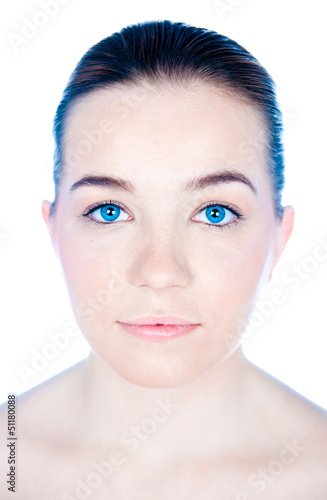 attractive, beauty, brunette, female, woman, girl, teenage, portrait, skin, soft, face, eye, expression, emotion, closeup, elegance, lady, make up, cosmetic, facial, caucasian, isolated, white, studio, looking, 1, person, style, sensuality, modern, calm, peaceful, body, care, bodycare, skincare, teenage