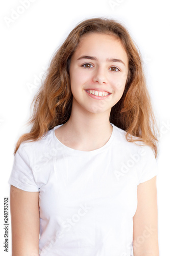 girl, happy, white, isolated, portrait, background, woman, young, smiling, smile, female, teenage, model, t-shirt, beautiful, shirt, attractive, looking, face, hair, person, teenage, cute, t, pretty, camera, casual attire, beauty, people, up, adult, modern, closeup, healthy, natural, 1, lifestyle, studio, joy, expression, student, copy space, coiffure, facial, caucasian, closeup, children, design, stylish