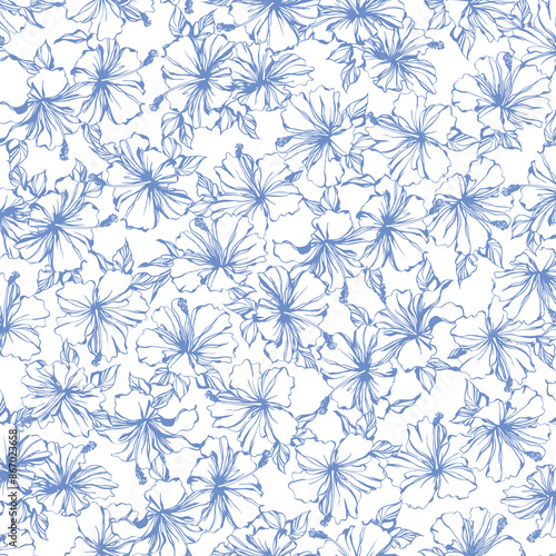 flower, hibiscus, plant, floral, bloom, tropical, pattern, patterned, design, fabric, texture, textile, seamless, abstract, background, wallpaper, fashion, decorative, apparel, clothes, jungle, beautiful, exotic