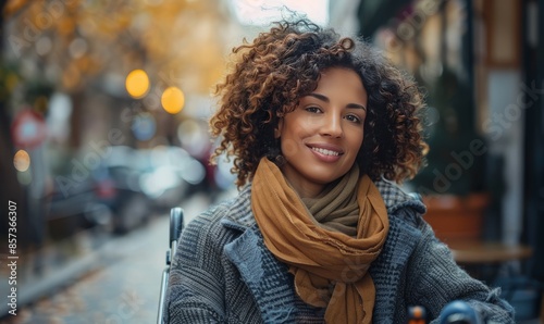ai, adult, portrait, person, woman, female, lady, lifestyle, beauty, young, happy, attractive, outdoors, smiling, black, outside, american, happiness, looking, fashion, african, hair, face, nature, closeup, cute, beautiful, 2, bedchamber, handicap, street