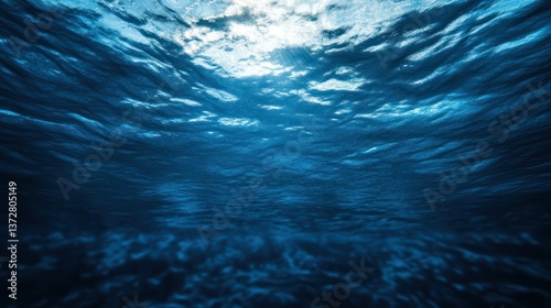 water, ocean, underwater, surface, blue, depth, light, sunlight, wave, ripple, texture, dark, marin, aquatic, clear, abstract, tranquil, serene, calm, background, perspective, horizon, semitransparent, below, flowing, motion, natural, scene, environment, bright, high-coloured, reflective, movement, liquid, pattern, deep, mystery, mysterious, shadowy, shimmering, illumination, ray, gleam, aethereal, dreamy, beauty