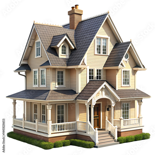 Beautiful Victorian Style House Exterior isolated on transparent background