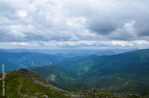 mountain, landscape, sky, nature, mountain, green, view, cloud, summer, panorama, blue, forest, hill, vale, travel, grass, peak, cloud, panoramic, tree, beautiful, rock, tour tourism, alps, ridge, range, ukraine, background, stone, slope, hiking, scenic