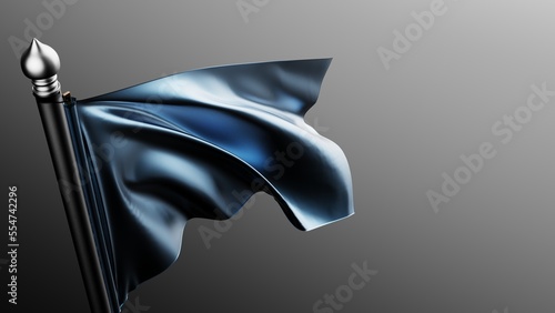 Beautiful waving metallic blue Flag. 3D illustration. 3D CG. High resolution. 3D high quality rendering.