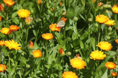 plant, herb, medicative, calendula, marigold, many, group, flower, botanical, flora, orange, green, background, floral, growing, blossom, season, botany, outdoors, summer, meadow, insect, butterfly, beautiful, nature, blooming, beauty, growth, herbal, bloom, blossoming, flowering, pot, colours, flower, leaf, foliage, yellow, view, sunny, day, field, white