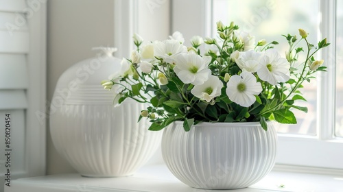 Beautiful white flowers in a clean white pot, offering a fresh and elegant look.