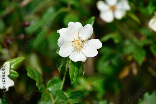 Beautiful white spring flowers with green background