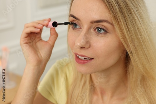 adult, applying, artist, background, beautiful, beauty, black, brush, care, caucasian, closeup, cosmetic, decorative, effect, elegant, eye, eyelash, eyelash, eye, face, facial, fashion, female, glamour, happy, home, indoor, ink, whipped, lash, long, constructed, make-up, mascara, natural, person, prepare, product, smiling, stylish, trendy, up, visage, vogue, volume, waterproof, woman, young