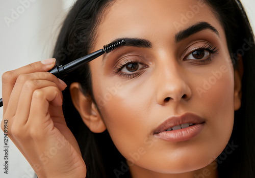 Beautiful Woman Defining Eyebrows with Precision Brush